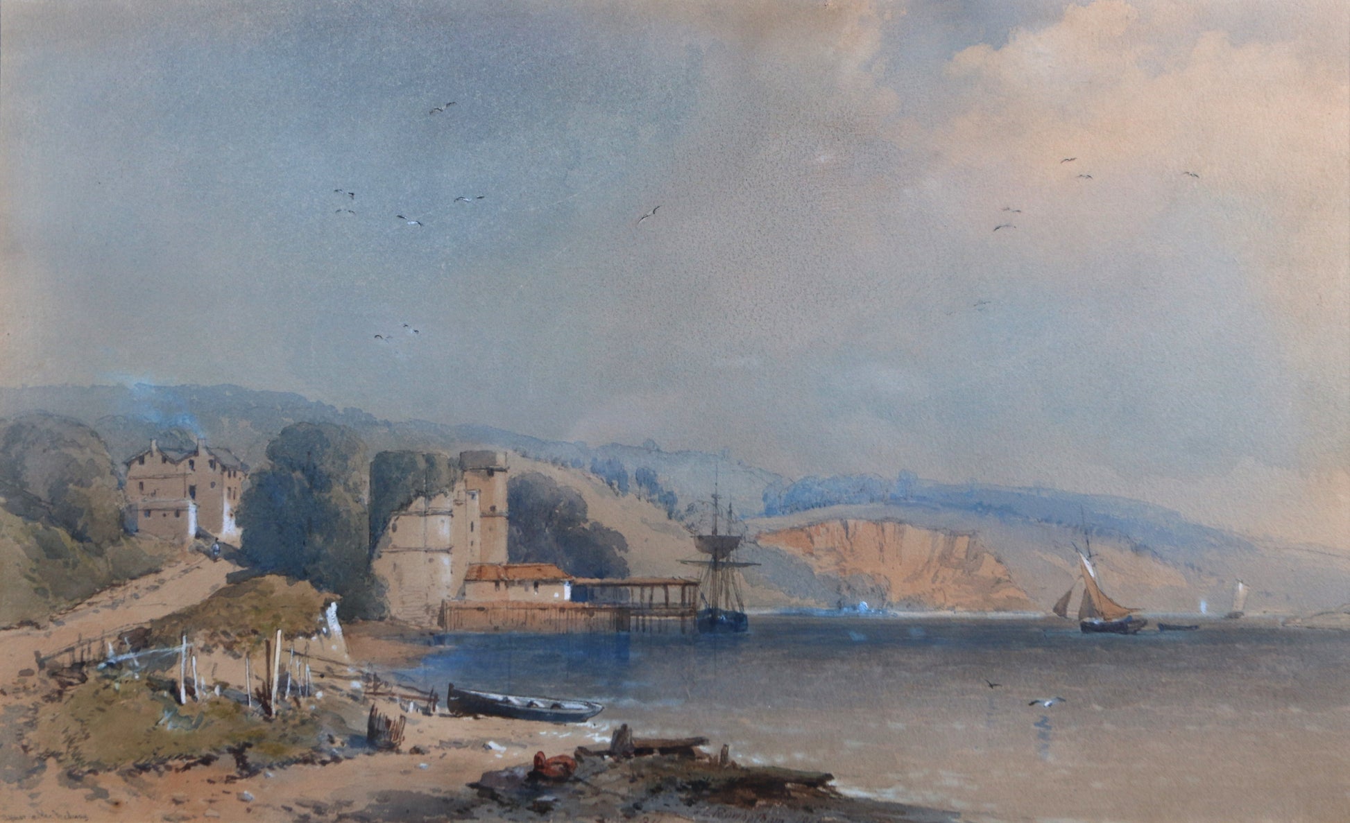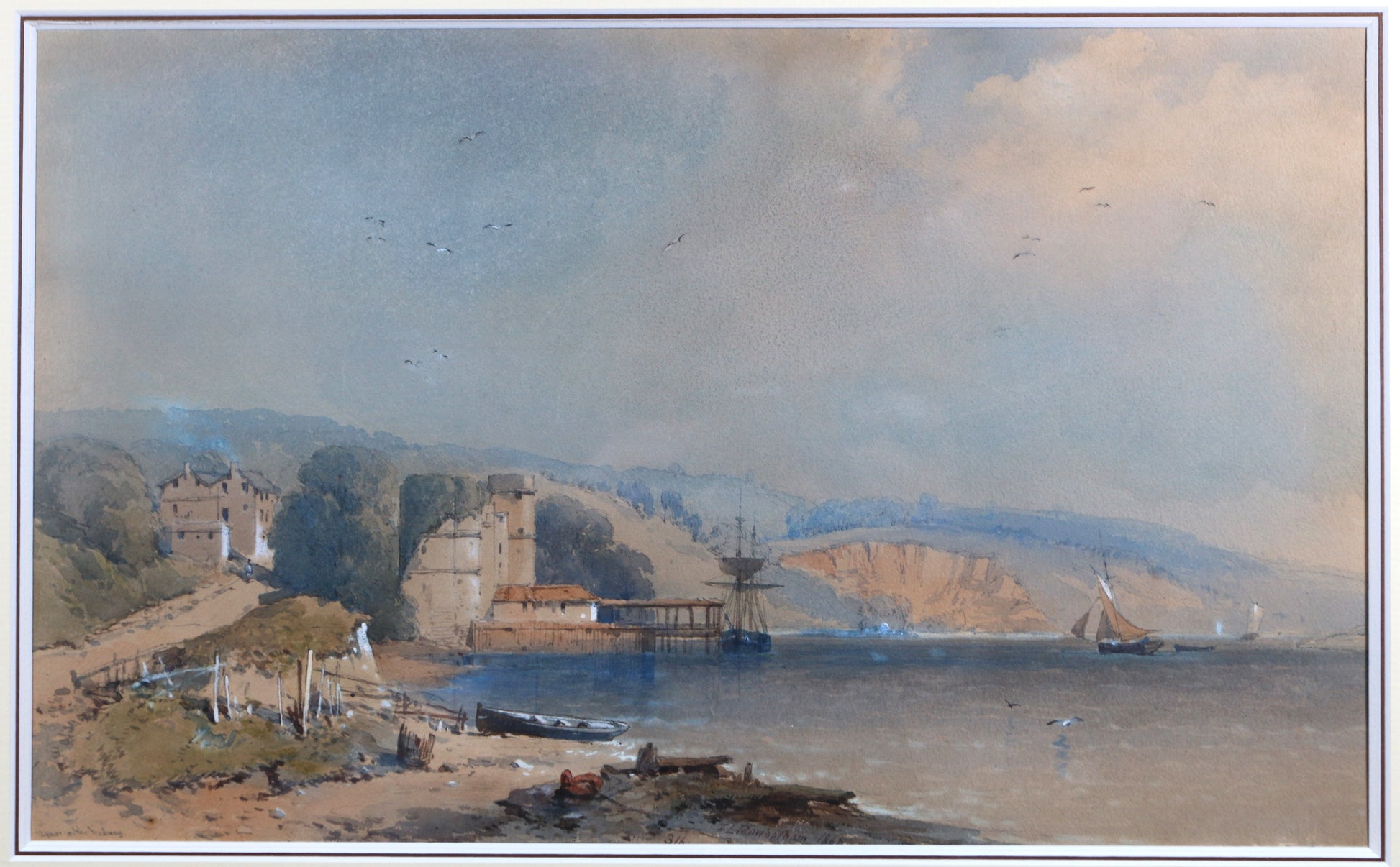 A Watercolour landscape by the Irish artist Thomas Leeson Rowbotham (1823-1875) entitled ‘Upnor on the river Medway 1865’