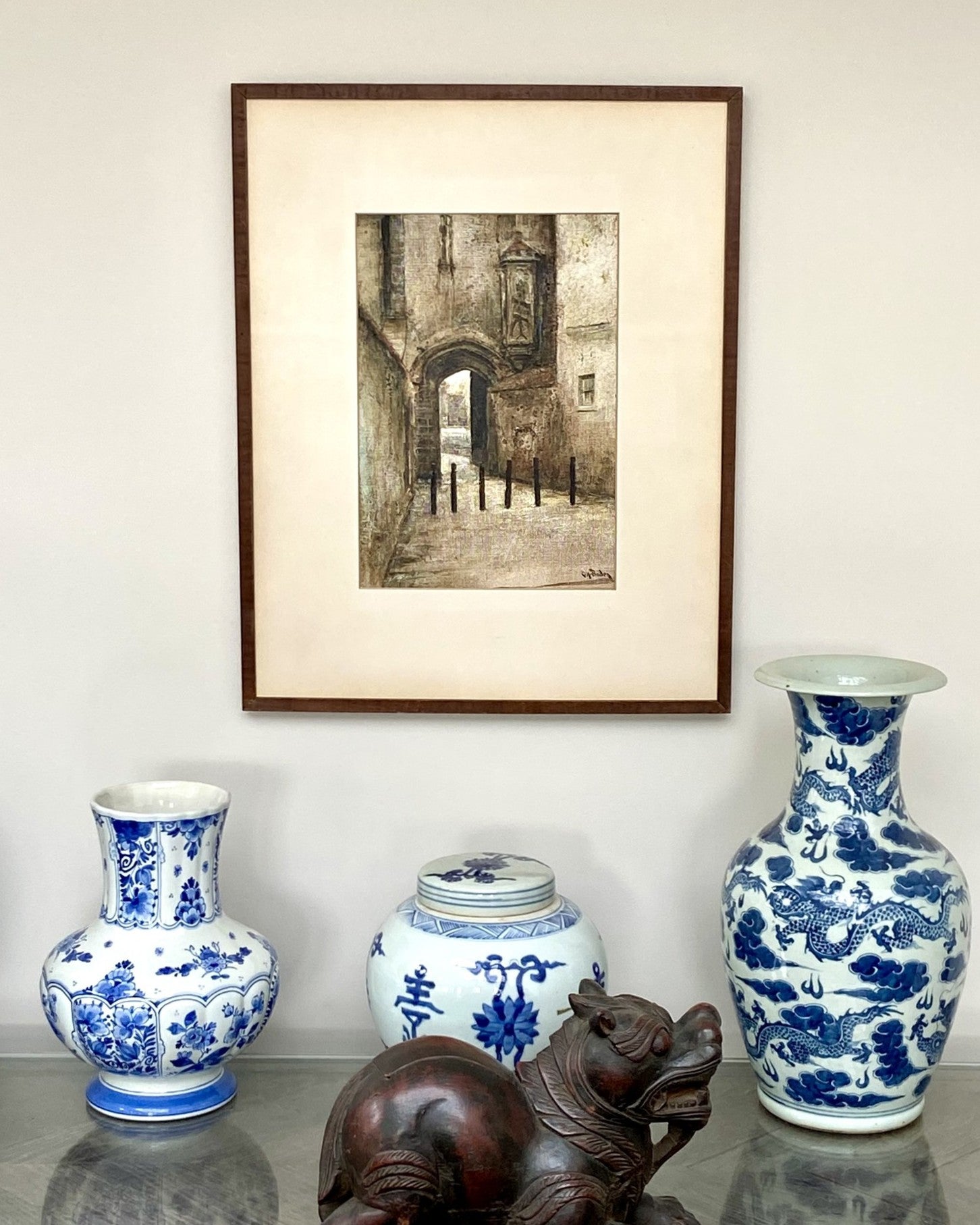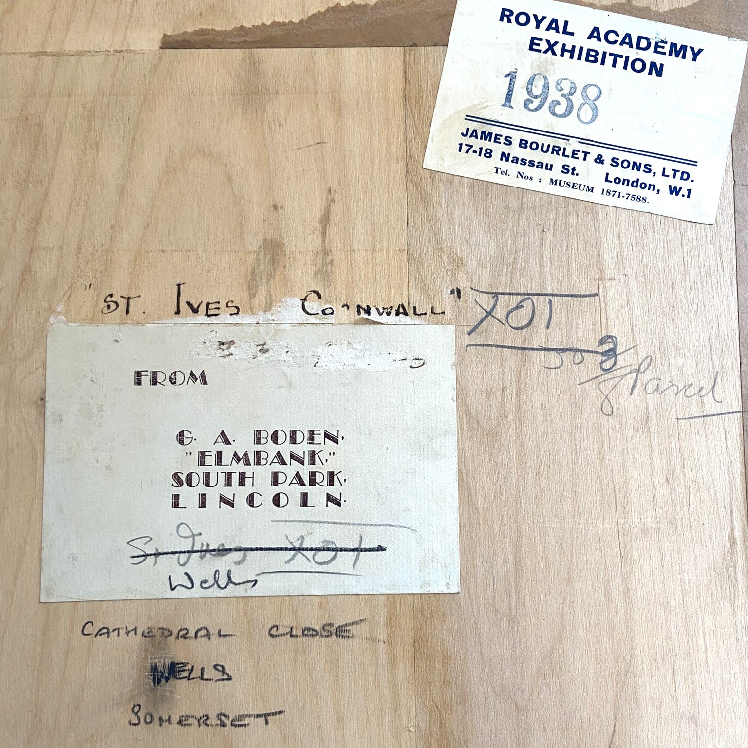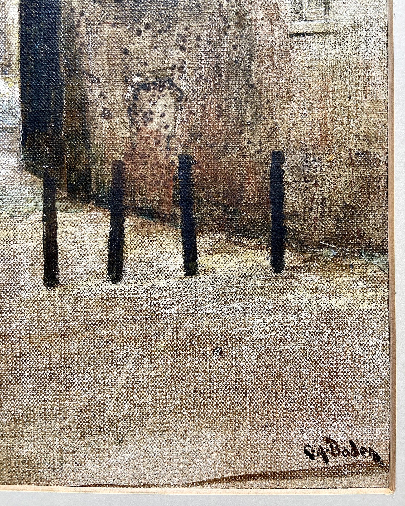 Born in Lincoln, Boden studied at Lincoln School of Art, Atelier Colarossi, Paris, Académie des Beaux-Arts, Antwerp, Camberwell School of Arts and Crafts and John Hassall’s poster school, in London. Exhibited, RBA, RI, in the provinces and at the Paris Salon. Glasgow Museum and Art Galleries hold his work. Boden exhibited at the RA 1918 and 1920. There is a label verso for the Royal Academy Exhibition in 1938 but it appears this work was rejected.