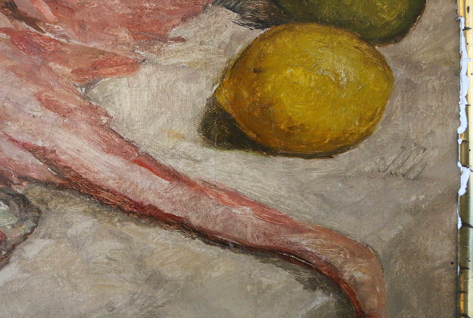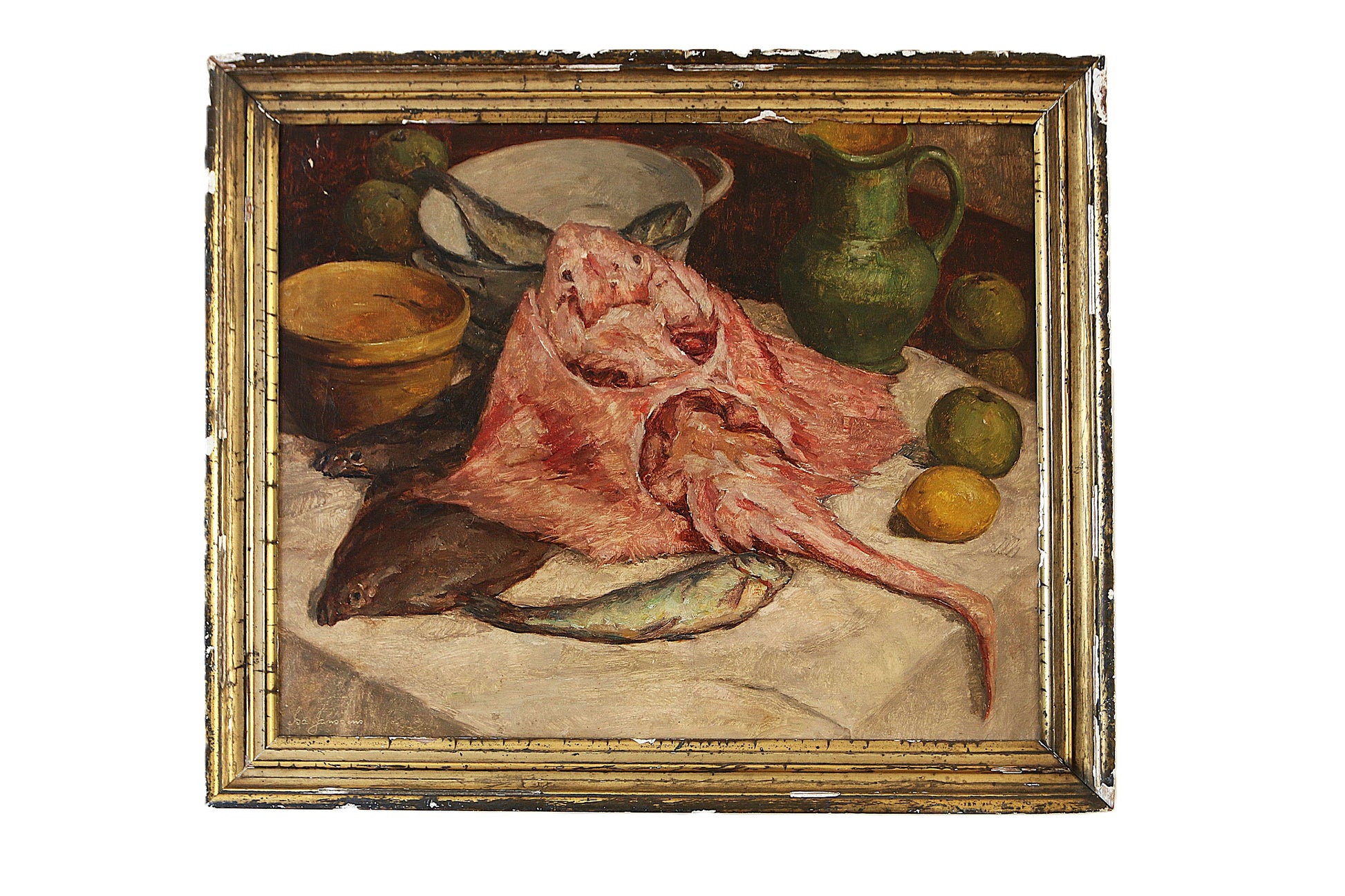 Isa Janssens. (Belgian, 1898–1978) Oil on Canvas Still Life with Ray Fish and Lemons
