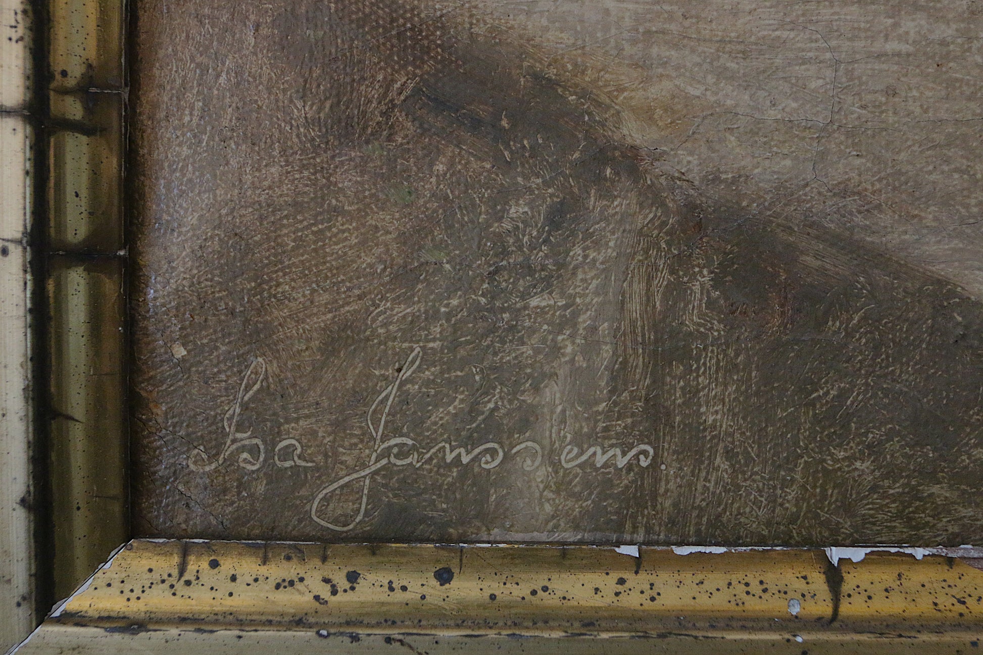 The painting would welcome a professional clean and there is some cracking to the paint surface, the condition is evident from the pictures but I think along with the distressed gilt frame it gives a real rustic quality that would be welcome in a farmhouse kitchen, fisherman’s cottage or maybe a seafood restaurant. Food for thought!