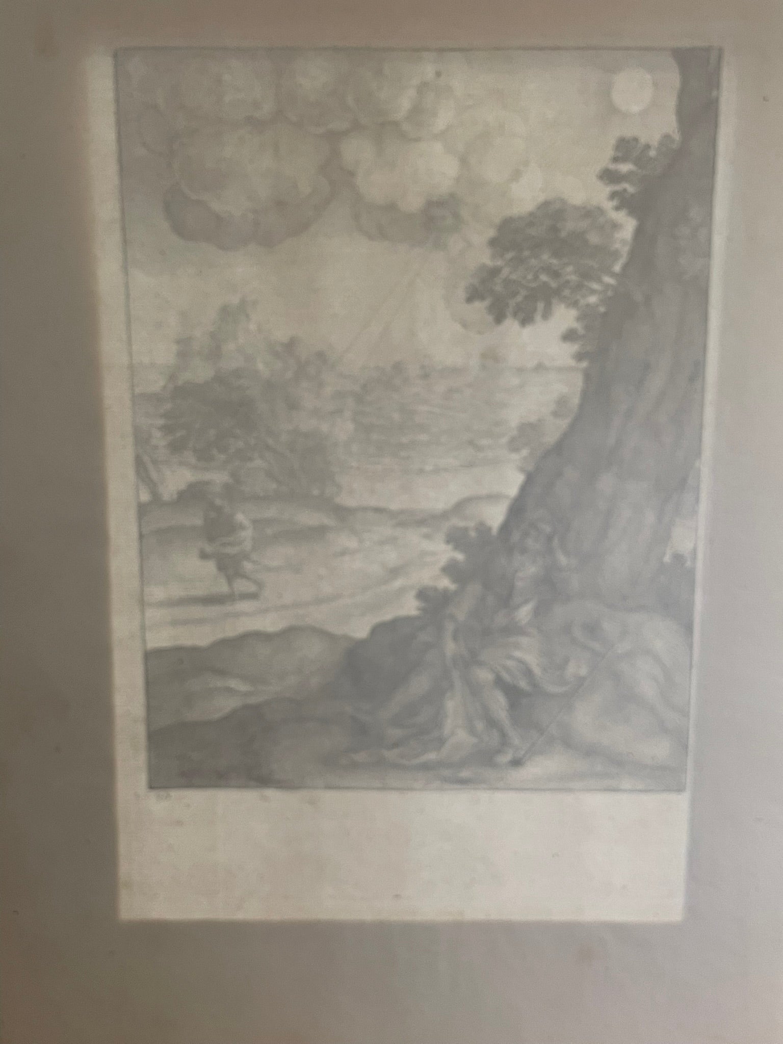 In this etching, Wenceslaus Hollar (1607–1677) illustrates one of Aesop’s most beloved fables — The Sun and the Wind, also known as The North Wind and the Sun. In the story, the Wind and the Sun compete to make a traveller remove his cloak. The Wind’s bluster only makes the man clutch it tighter, while the Sun’s gentle warmth persuades him to shed it. The moral, gentle persuasion can win over brute strength.